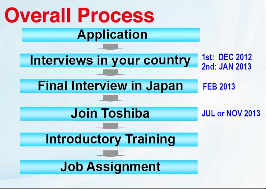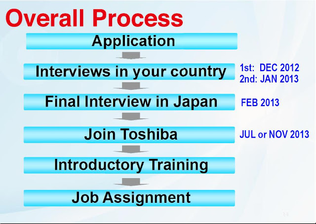 Selected applicants will be invited to Toshiba in Japan for final interview in Feb 2013